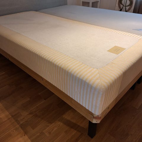 Mio resårmadrass med tillhörande bäddmadrass. Har fått äran att vara gästsäng men den hoppas nu hitta en ny ägare som använder den mer frekvent. Ca 4 år gammal och har hunnit bli 90x200, men har stannat i växten.