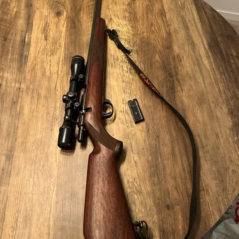 Fin bössa, halvautomat, Leuopld kikare. Följer med fodral o ammo.