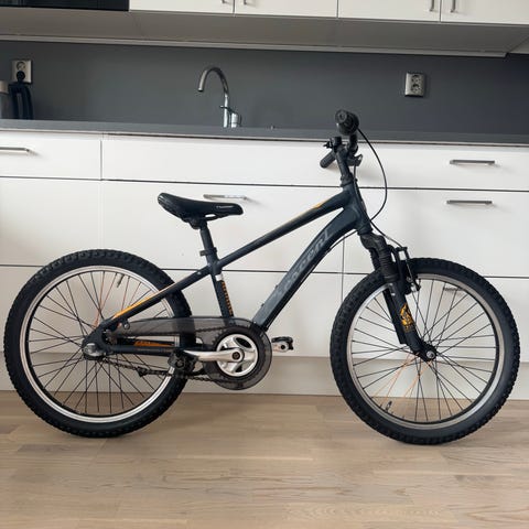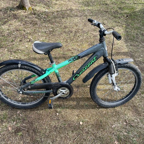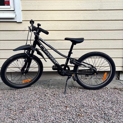 Crescent barncykel med 20" hjul i svart färg. Cykeln har rak ram, handbroms fram och bak samt växlar som manövreras via vridreglage på styret. Utrustad med skärmar och reflexer. Passar barn som är lagom stora för 20-tums hjul, exempelvis för cykling till skola, fritidsaktiviteter och vardagsbruk.
