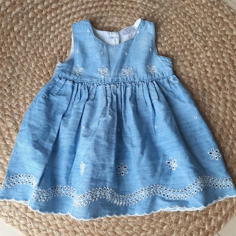 Vit klänning med body under o broderade detaljer. Knappar i ryggen och i grenen för enkel påklädning. Mycket fint skick!