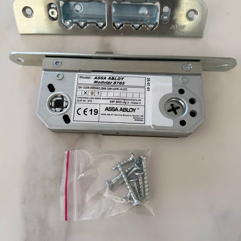 Assa Abloy Entré D12-K1 låssats i mässing för ytterdörr. Satsen innehåller dörrtrycken, cylindrar, låshus, slutbleck, skruv och nycklar enligt förpackning. Passar som entrélås till ytterdörr där man önskar Assa D12-cylinder. Monteringsanvisning för Assa Entré D12-K1 ingår i paketet. Blivit över vid renovering. Nypris drygt 4000 kr.