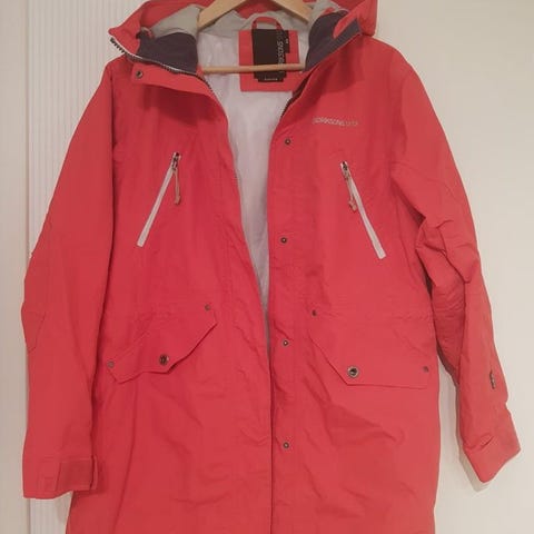 Didriksons Lana parkas för dam i storlek 42. Jackan är vind och vattentät. Endast använd någon enstaka gång. Se bif. Beskrivning.