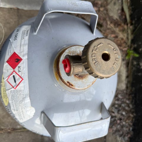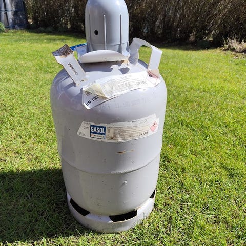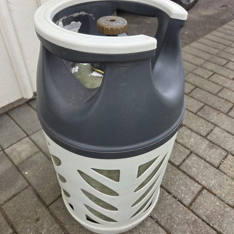 Oanvänd gasoltub som var ämnad för husvagn.