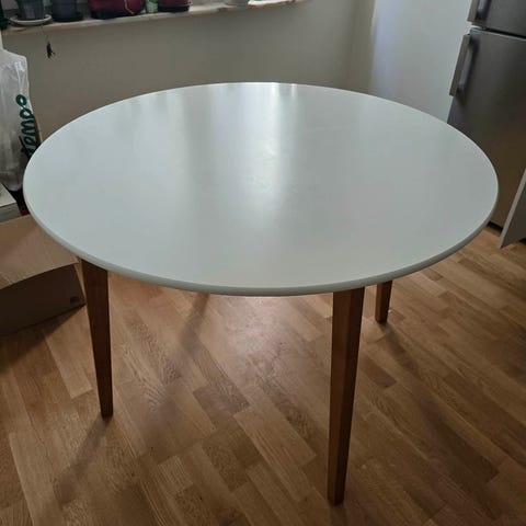 Väl använt men gott helhetsintryck. Se bilder för skick. Bordsskivan behöver fästas bättre i ställningen och det kan behöva kompletteras med en skruv eller två.