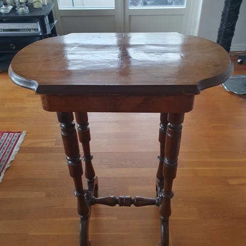 Sidobord i trä (teak?), sängbord, nattygsbord, hallbord.