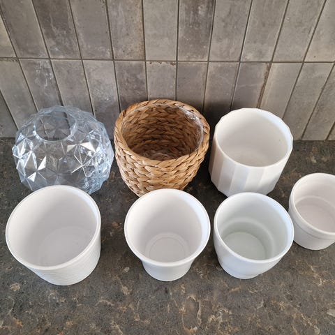 De vita kan användas som ljusstakar till smalare kronljus om man vänder dem, se bilder. Dem är ganska så tunga.