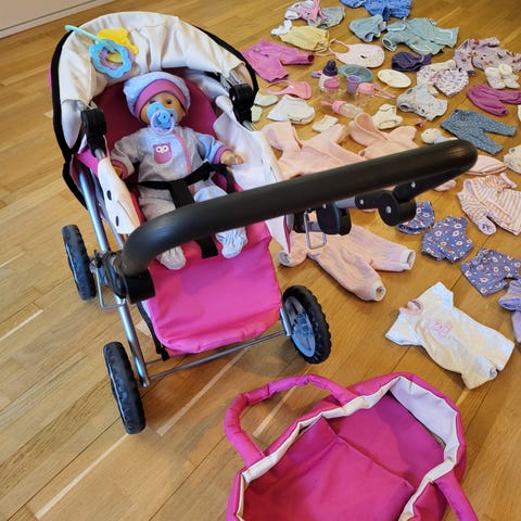 Stort Baby Born dockset med dockor, dockvagn och kläder