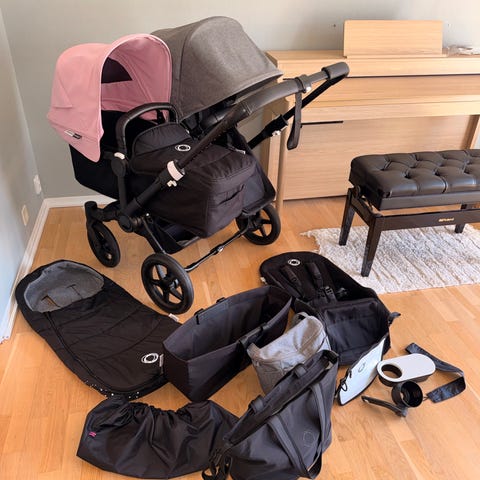 Bugaboo donkey 2 duovagn. Väl använd men finns mer att ge. Liggdel saknas. Många tillbehör såsom: