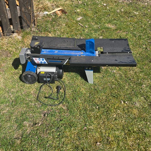 AL-KO KHS 3700 vedklyv med elektrisk motor på 1500 W. Drivs med 230 V, 1-fas, 50 Hz. Utrustad med hjul och handtag för enklare förflyttning