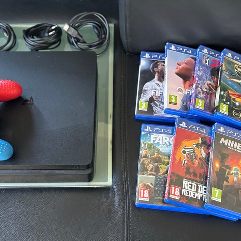 Säljer ett mycket välvårdat PlayStation 4 Pro-paket. Detta är Pro-modellen, vilket innebär kraftfullare prestanda och stöd för 4K-upplösning – perfekt för dig som vill ha den bästa spelupplevelsen på PS4.