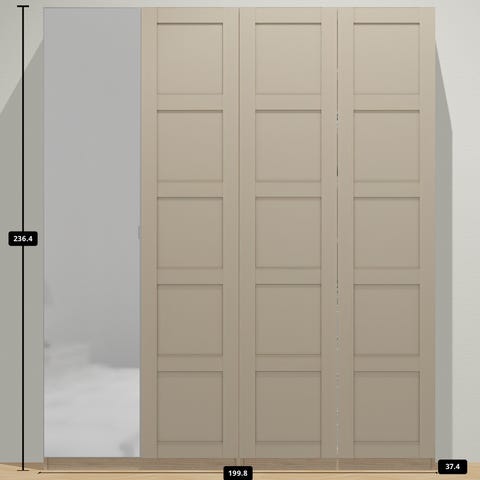 Observera: Det finns en mindre skillnad jämfört med produktbilderna från IKEA – i verkligheten har mittsektionen en spegeldörr.