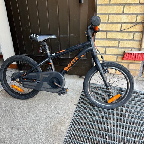 Barncykel White 16 tum i bra skick. Använd men väl underhållen. Allt funkar som det ska så det är bara att hoppa på och dra iväg.