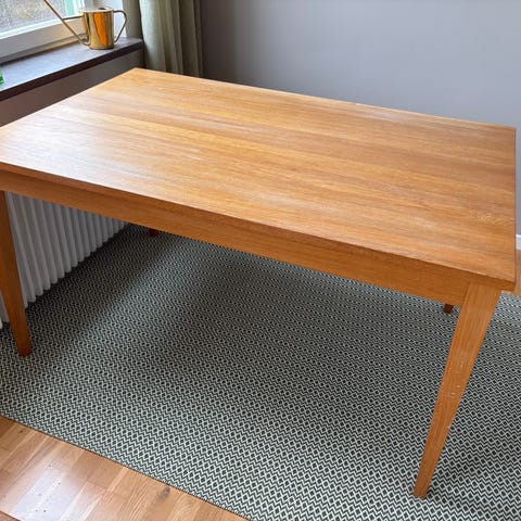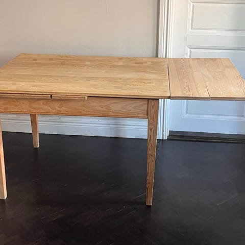 MIOs Ekerö, så hög kvalitet. Varsamt använt, alltid haft duk, bara 2 år. Skulle gärna fortsätta använda mitt bord, men flyttar till mindre så bordet får tyvärr inte plats.