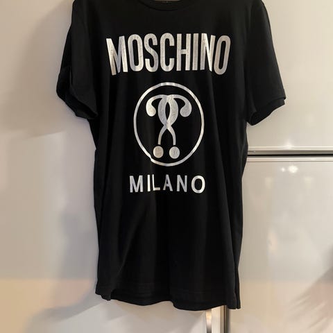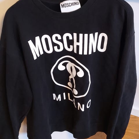 Säljer en svart hoodie från Moschino med stor logga framtill (MOSCHINO MILANO