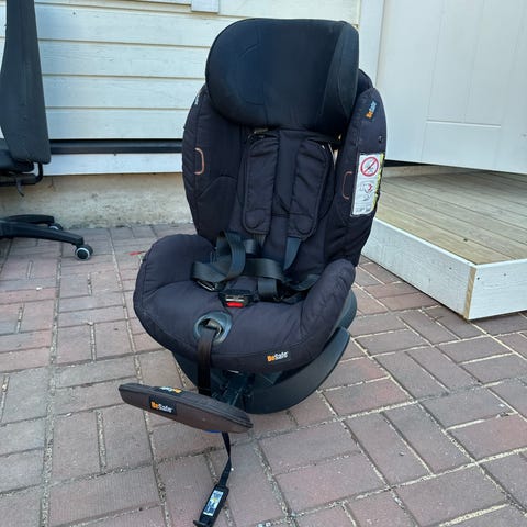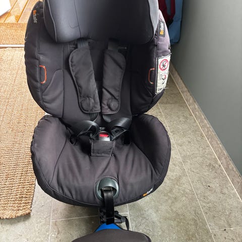 BeSafe bilbarnstol för barn upp till 25 kg. Bakåtvänd bilbarnstol i svart utförande med fempunktsbälte och justerbart huvudstöd. Stolen har stödben och bältesförankring för montering i bilen.