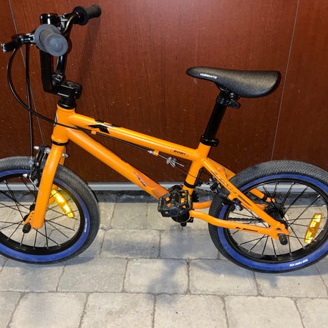 Monark barncykel med 16" hjul i lila färg. Cykeln har låg ram anpassad för barn, fotbroms bak och handbroms fram. Utrustad med korg fram, pakethållare bak, stöd och kedjeskydd. Passar som vardagscykel för barn som växer ur mindre balans- eller springcykel och vill ha en trampcykel med korg och pakethållare.