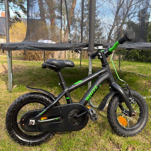 Barncykel 10 tum White med medföljande stödhjul (ej monterade). Lämplig till 4-5 åring.