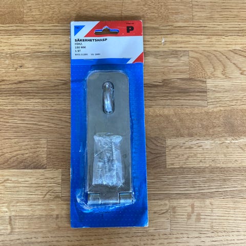 Bårebo haspar, 2 st 80 mm + 1 st 100 mm blankförzinkade. Levereras med tillhörande ögelskruvar för montering, lämplig för exempelvis dörrar, grindar eller luckor där enkel mekanisk förregling önskas.