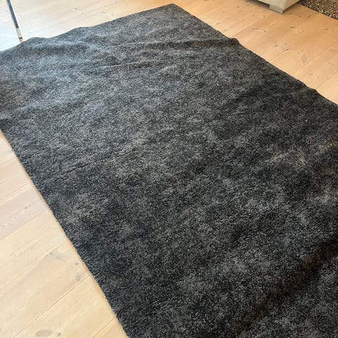Trevlig vändbar vävd matta med svart lugg bortskänkes! Synligt använd med fläckar...