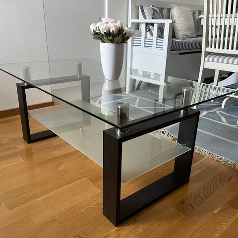 Soffbord glas svart metallram rektangulärt