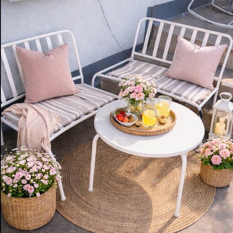 Vita trädgårdsbänkar i plast. Bänken har ryggstöd med dekorativt rutmönster och armstöd på båda sidor. Passar för utomhusbruk i trädgård, på altan eller uteplats. Sits och rygg är utformade i ett stycke för enkel rengöring och hantering. Det är 2 st likadana. Rejäla. Kan behöva en tvätt. 112 cm långa och 85 cm höga.