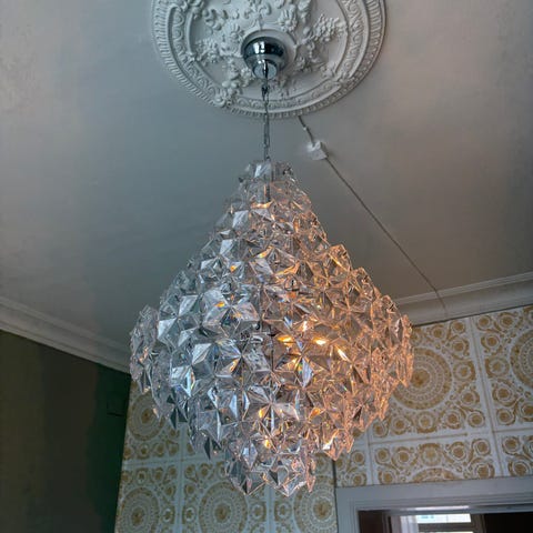 Vacker lampa från Rydéns Omega 70 hög. Kromade fot. Lyxig och bra kvalité. Skärm i tyg