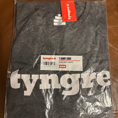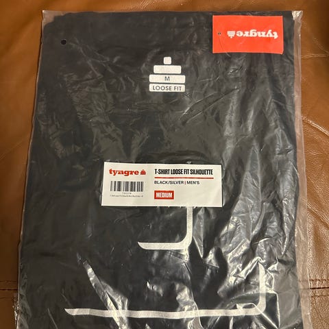 Säljer en helt oöppnad Tyngre t-shirt som är i ljus grå färg. Ligger fortfarande i orginalförpackningen. Tröjan är i storlek M. Nypriset 250kr