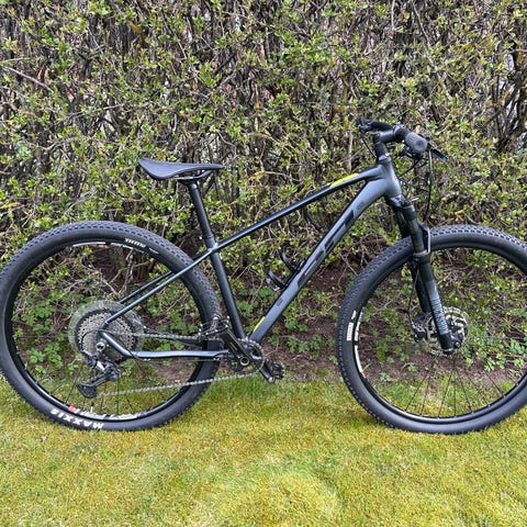 Hardtail med ram av kolfiber och växelgrupp from SRAM. I mycket fint skick då den är sparsamt använd, tvättad efter använding, alltid förvarad i garage.