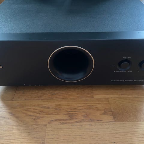 Yamaha subwoffer som ger ljud ifrån sig men väldigt svagt, jag har inte felsökt den vidare.