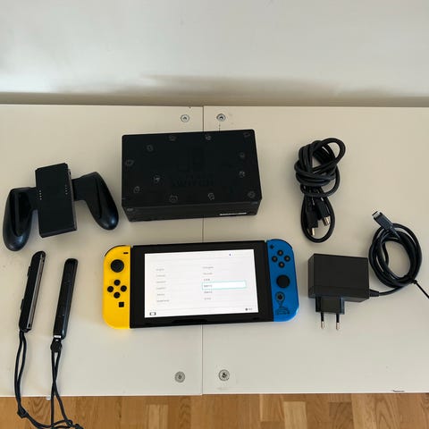 Nintendo Switch V2 + 2 extra Joy-Cons + 2 st spel + Sandisk utrymmeskort 128 gb