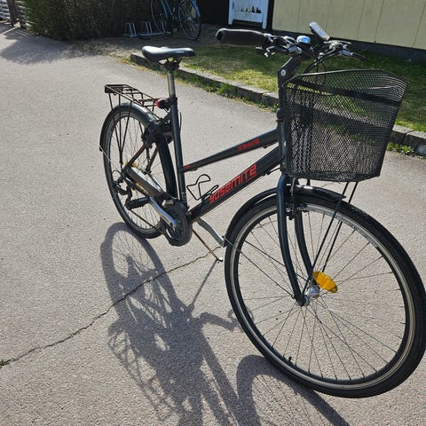 Väldigt snabb cykel - relativt smalt styre och förhållandevis smala däck, perfekt cykel för pending till jobb eller montera barnstol på.