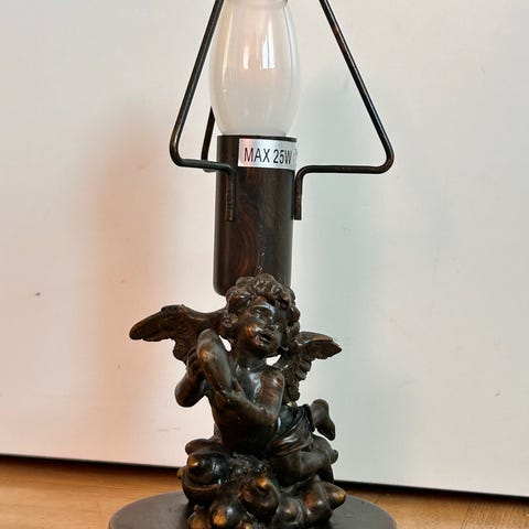 Bedårande antik lampa med ängel.