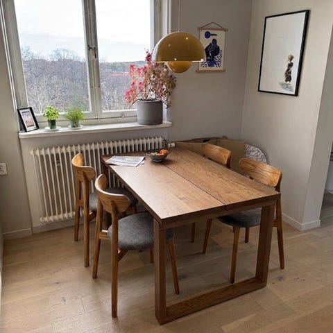 Inköpt 2022. Liknande bord säljs idag för ca 15 000–20 000 kr i nypris.