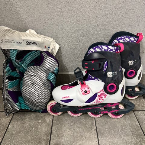 Jag säljer play 3 rosa inlines från oxelo. De funkar perfekt men är synligt använda.