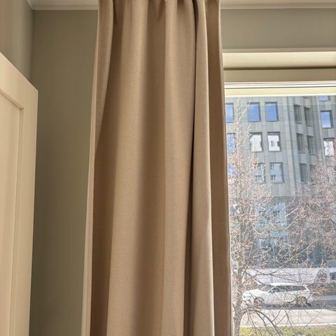 IKEA gardin i beige färg. Ljusgenomsläppligt tyg som ger ett mjukt ljusinsläpp i rummet. Passar för montering på gardinstång med hällor eller ringar beroende på modell. Lämplig för vardagsrum, sovrum eller andra utrymmen där man vill skärma av insyn men ändå behålla dagsljus. Tre gardinpar dvs sex våder. Standardmått.