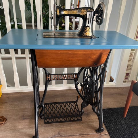 Symaskinsbord med gjutjärnsunderrede vit
