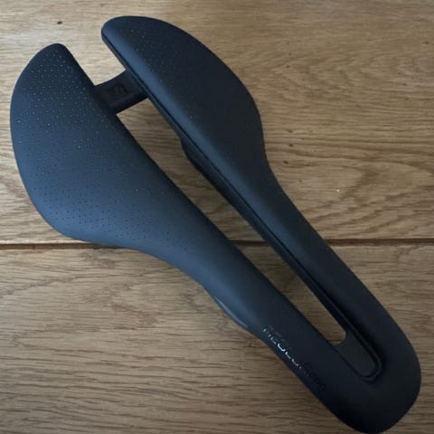 Helt ny - En aerodynamisk racersadel med fullängdskanal som utformats efter senaste biomekaniska forskningsrön för minimalt tryck på mjukdelar och maximal kraft med bibehållen komfort