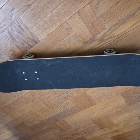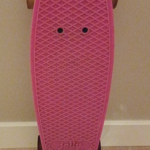 Mini cruiser skateboard i rosa plast med blågröna hjul. Brädan har mönstrad ovansida för bättre grepp. Utrustad med metalltruckar och mjuka hjul som lämpar sig för cruising på asfalt och andra släta underlag. Passar för barn och ungdomar eller som kompakt bräda för kortare turer.