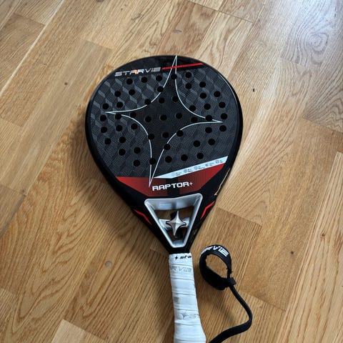 Finns ytlig skada på ramen och slagytan men de är stenhårda så inget som påverkar rackets funktion.