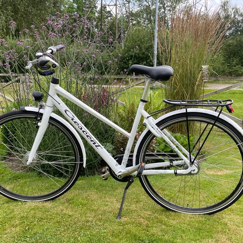 Crescent Rissa sport S3, 7 vxl stadscykel. Ram storlek 51 cm och 28" hjul. Utrustad med pakethållare, korg, stänkskärmar, kedjeskydd, navgenerator, lyse fram och bak, samt lås med 2 nycklar.