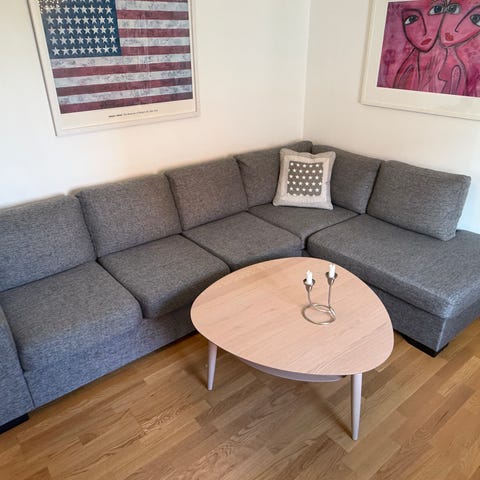 Hörnsoffa med 3 st nackstöd tyg grå Säljes pga felköp
