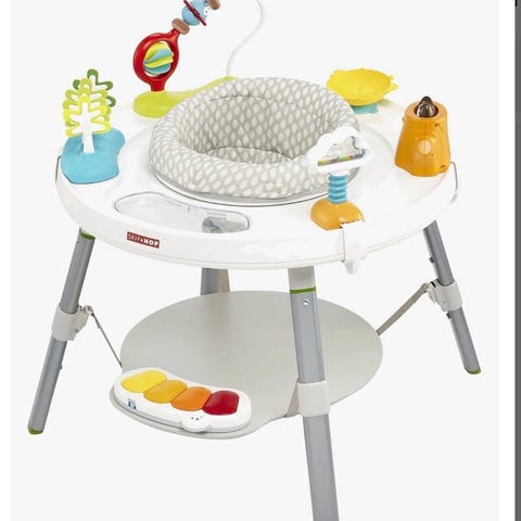 Skip Hop Explore & More är ett prisbelönt och mångsidigt aktivitetscenter utformat i samarbete med barnläkare för att stödja barnets utveckling genom "hela kroppen-lek". Det är känt för sin 3-i-1-design som gör att produkten kan växa i takt med barnet