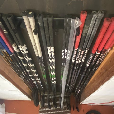 Snygg förvaring till hockeyklubbor, bandyklubbor, innebandyklubbor mm..