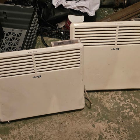 Säljer 3 stycken Honeywell konvektorelement i vit färg. Fristående modell med ben och nätkabel. Utrustad med vredreglage på sidan för inställning av värmenivå. Passar som extra värmekälla inomhus i till exempel rum, fritidshus eller garage. Kan placeras på golv och har ventilationsöppningar upptill och nedtill för cirkulation av varmluft.