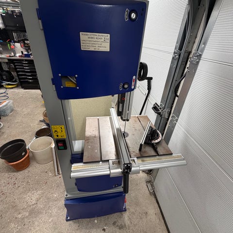 Bandsåg märke "Tekny", pris 2200 kr. Spånsug 1300 kr.