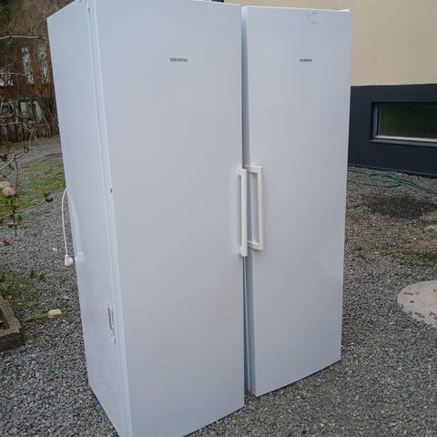 Bosch side-by-side kyl och frys i vit färg. Kylskåpsdelen har flera glashyllor, dörrhyllor samt grönsakslåda för förvaring av matvaror. Frysdelen har hyllor och utdragslådor för överskådlig infrysning och förvaring. Skåpen är fristående och har vertikala handtag på dörrarna. Passar som kombinerad kyl- och fryslösning i kök. Bemärk, det är två varor, en kyl och en frys. De är inte sammansatta/sammankopplade! Kostar cirka 8000 per styck att köpa nya. Fungerar utmärkt! Hämtas i Arlöv