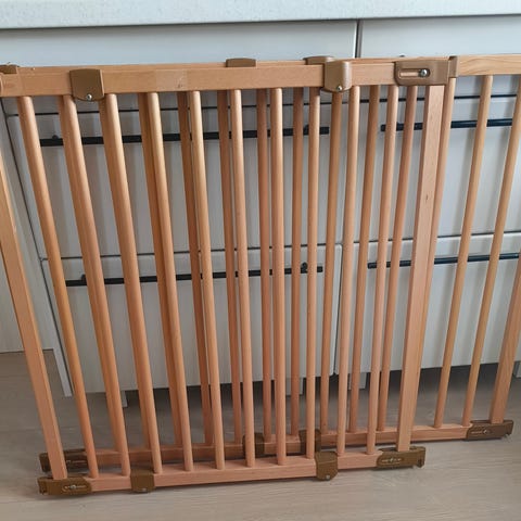 Säljer en praktisk och stabil barngrind som passar perfekt för att spärra av dörröppningar eller trappor.