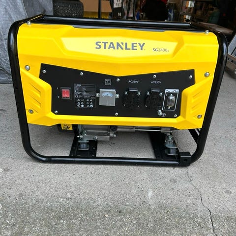 Stanley bärbart elverk i kompakt utförande i gul/svart färg. Elverket ger ren sinusström som lämpar sig för känslig elektronik. Utrustat med driftsäker fyrtaktsmotor och bärhandtag för enklare transport. Vikt cirka 14,5 kg enligt uppgift i bilden, vilket gör det lätt att bära vid tillfälliga elbehov, exempelvis vid arbete utomhus eller som reservkraft.