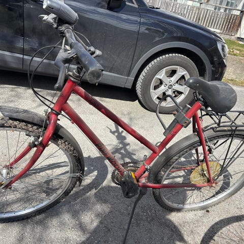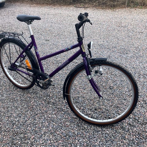 Ganska liten ram. 18 växlar. Bromsarna funkar och den rullar ok. Behöver en tvätt lampor och olja så kommer den funka fint som vardagscykel till bussen eller liknande.