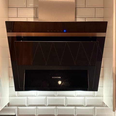 Siemens IQ700 serie inbyggnadsugn och Micro i svart glas med detaljer i rostfritt stål.